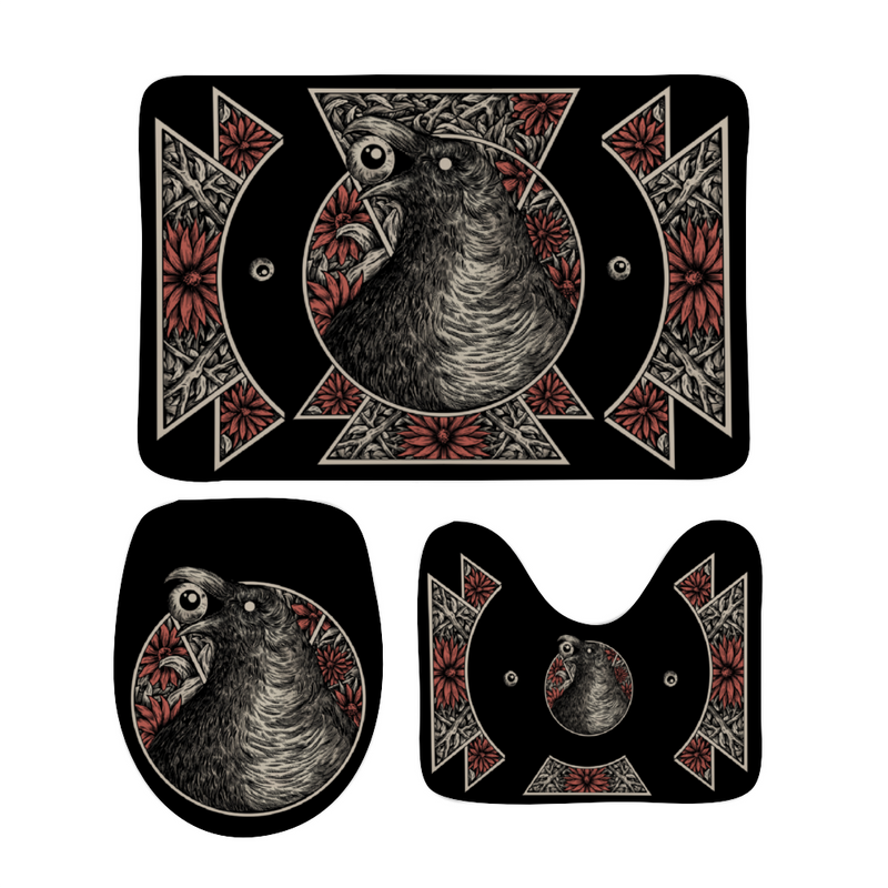 Goth Occult Black Crow Eye Coral Velvet Bathroom Set Color Version Custom Coral Fleece Bath Mats Coral velvet floor mat three sets