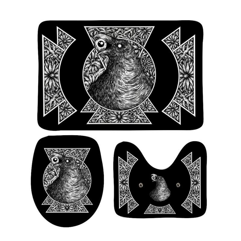 Goth Occult Black Crow Eye Coral Velvet 3 Piece Bathroom Set Black And White Version