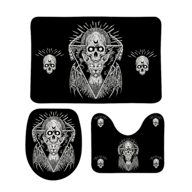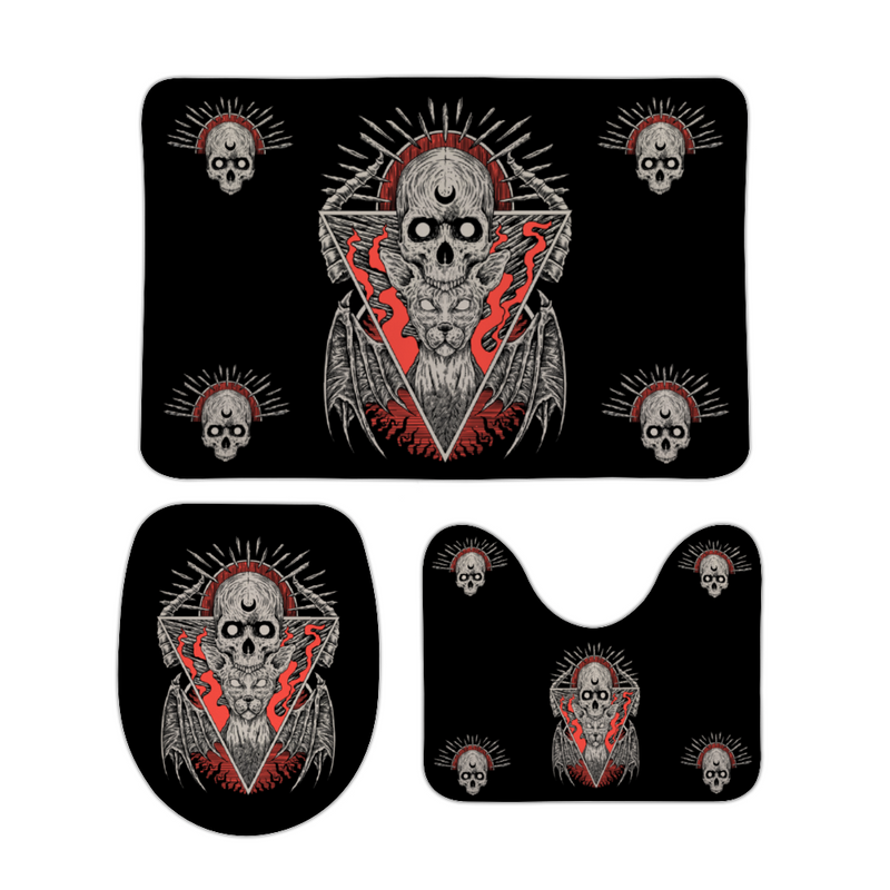 Skull Goth Occult Bat Wing Cat Coral Velvet 3 Piece Bathroom Set Color Version