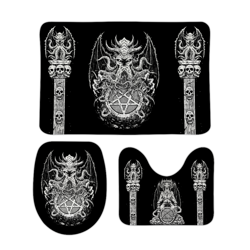 Skull Satanic Pentagram Ultimate Cthulhu Demon Octopus Coral Velvet Bathroom Set 3 Piece