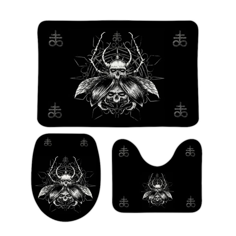 Skull Goth Occult Satanic Fly Coral Velvet 3 Piece Bathroom Set