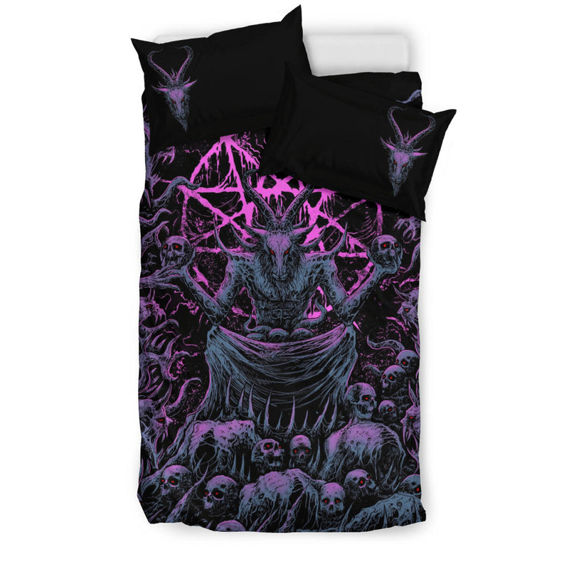 New! Original Skull Satanic Malevolent Cyclops Baphomet Goat Demon Invasion 3 Piece Duvet Set Awesome Blue Pink