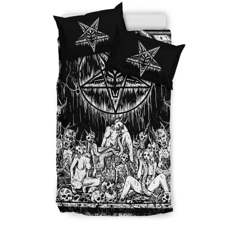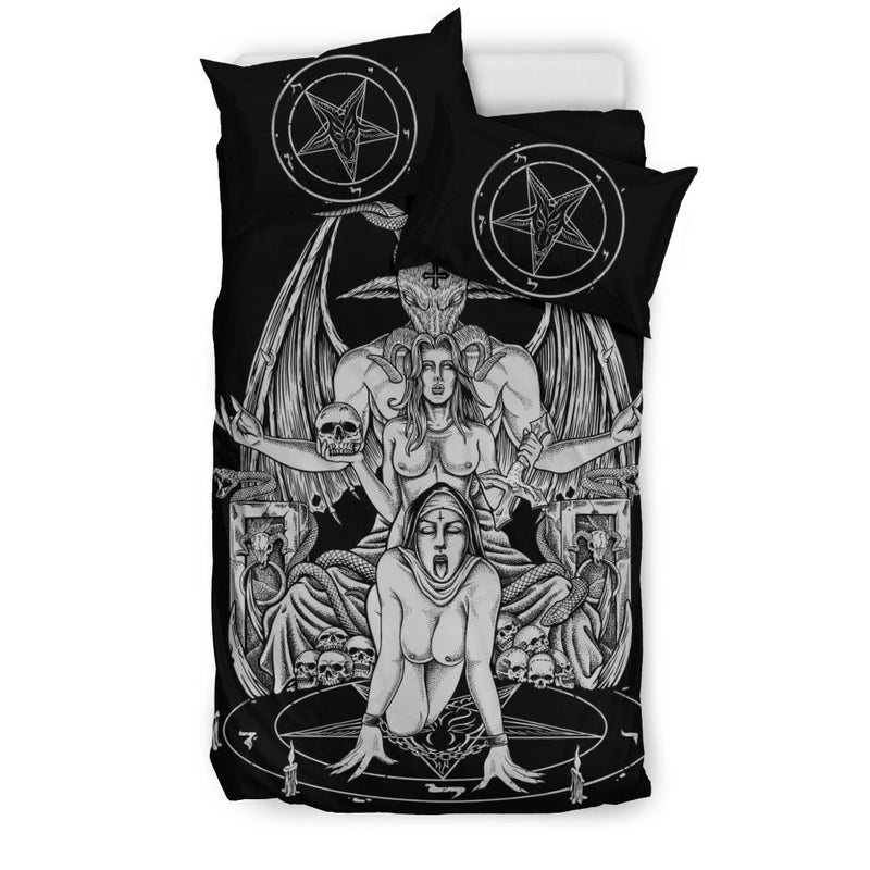 Skull Skeleton Satanic Pentagram Demon Lust Shrine 3 Piece Duvet Set