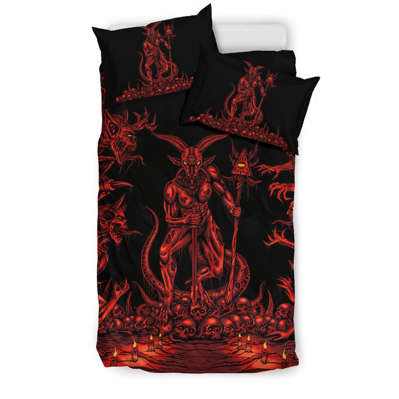 Skull Skeleton Satanic Pentagram Demon Lust Shrine 3 Piece Duvet Set