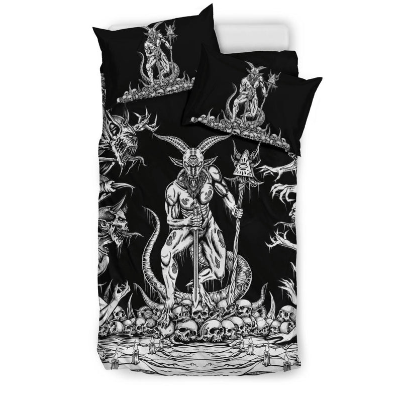 Skull Satanic Malevolent Cyclops Baphomet Goat Demon Onslaught 3 Piece Duvet Black And White