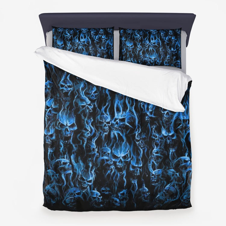 Exotic Blue Smoke Skull 3 Piece Microfiber Duvet Set