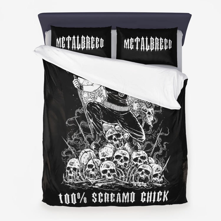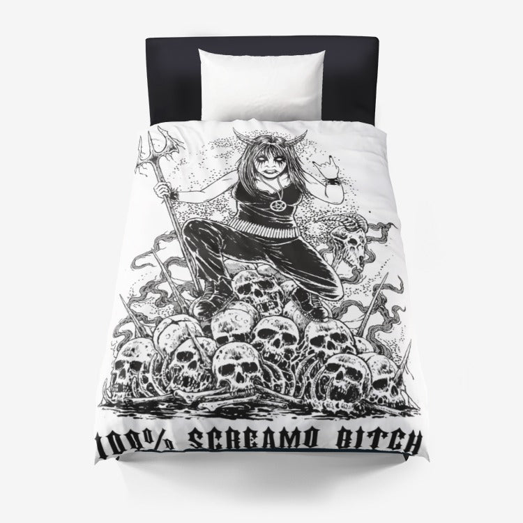 Skull Pentagram Heavy Metal Death Metal Black Metal 100% Screamo Bitch 3 Piece Duvet Set White Version