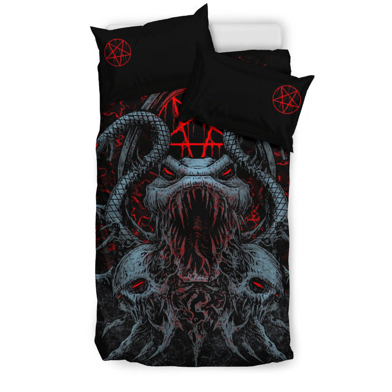 Skull Demon Serpent Satanic Pentagram Shrine 3 Piece Duvet Set Color Version