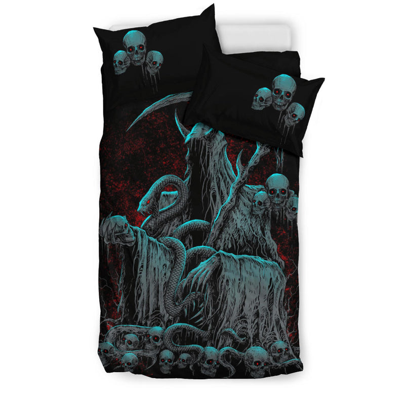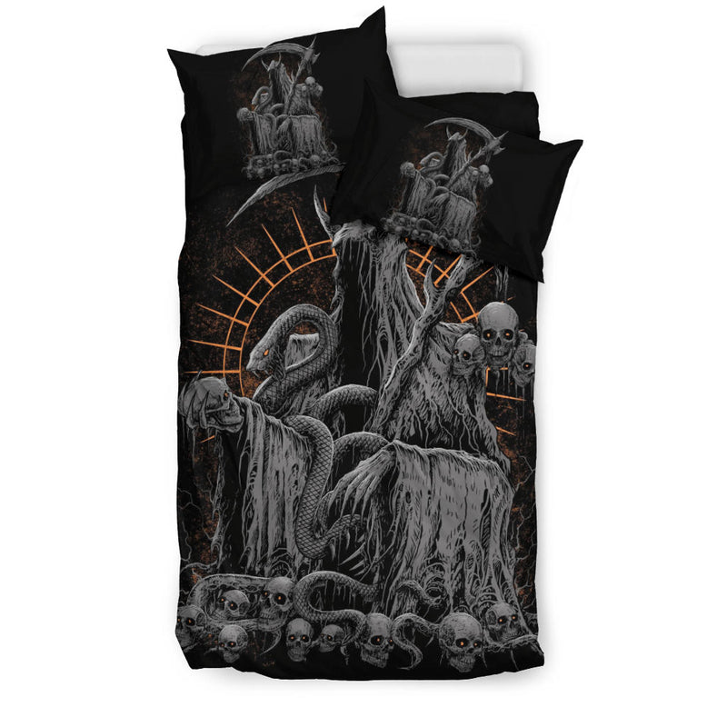Skull Serpent Hooded Reaper Demon Skull Trophy 3 Piece Duvet Set Color Version