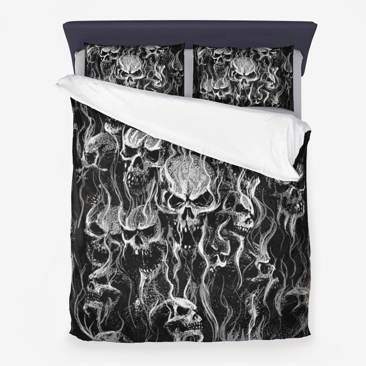 Smoke Skull Black And White Version 3 Piece Microfiber Duvet Set