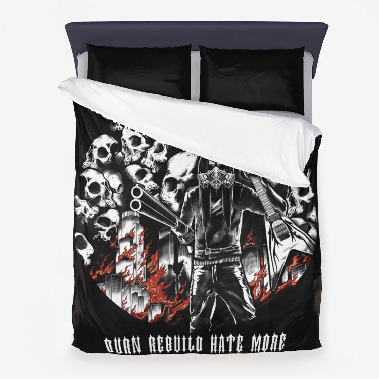Urban Metal Breed Skull Guitar Burn Rebuild Hate More 3 Piece Microfiber Duvet Set