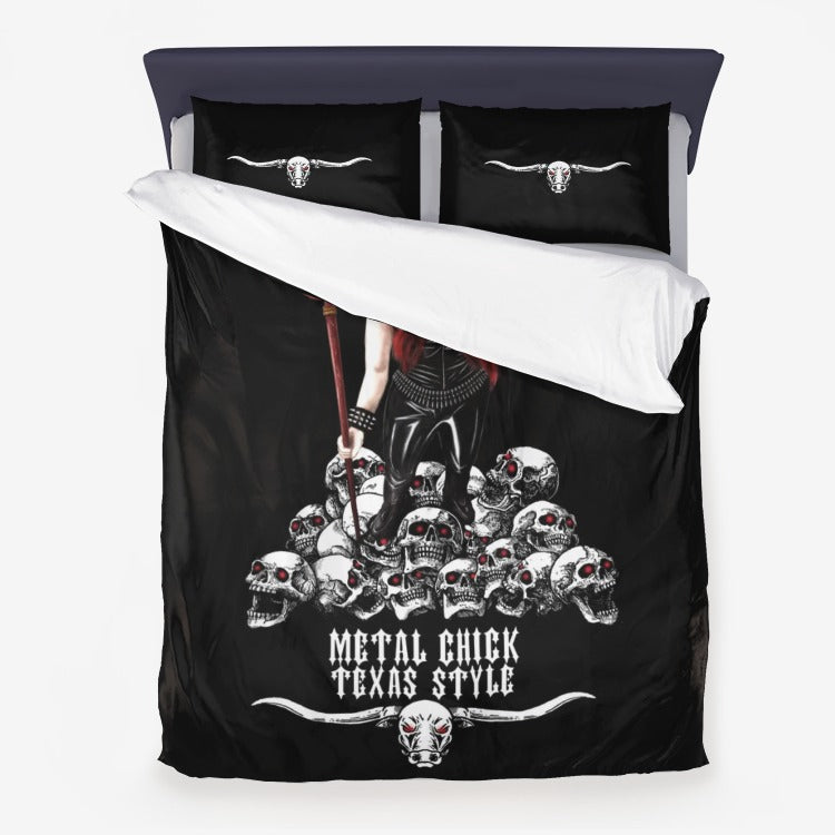 Texas Metal Chick Skull 3 Piece Microfiber Duvet Set