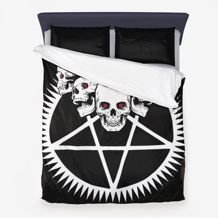 Skull Satanic Pentagram Occult Demon 3 Piece Duvet Set Color Version