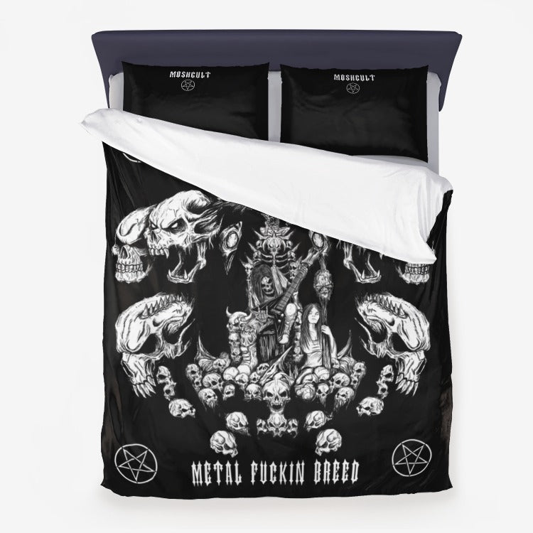 Matalbreed Death Metal Heavy Metal Music Skull Guitar Inverted Pentagram 3 Piece Bed Set