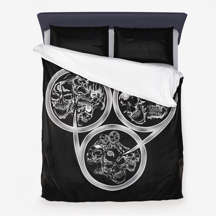 Triple 666 Silver Skull 3 Piece Microfiber Duvet Set
