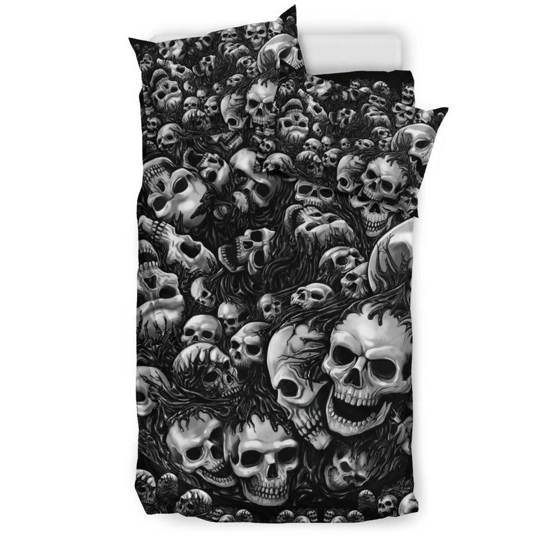 Silver Skull Pile 3 Piece Duvet Set