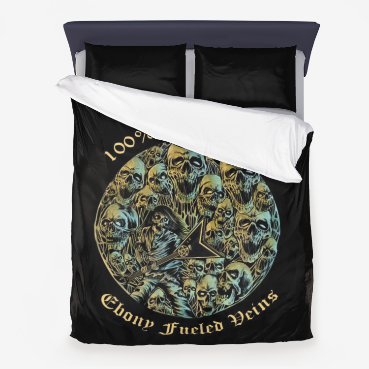 Skull Demon Headless Skeleton With Inverted Cross 3 Piece Duvet Set