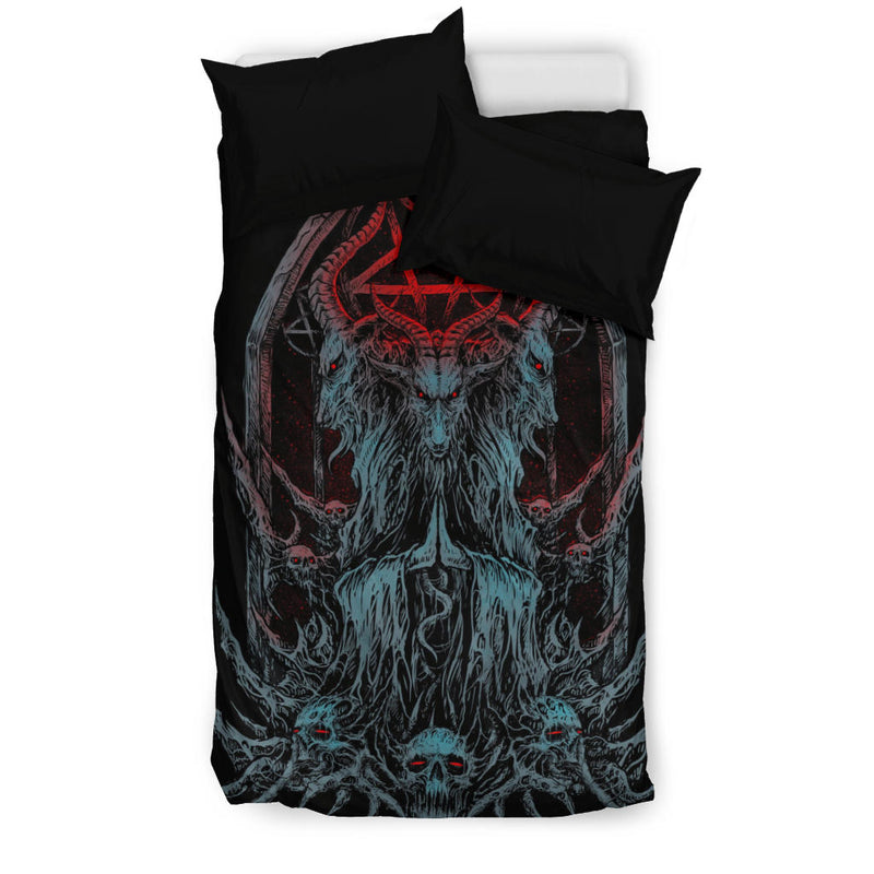 Skull Satanic Goat Inverted Pentagram Shrine 2nd Prayer Color Version 3 Piece Duvet Set