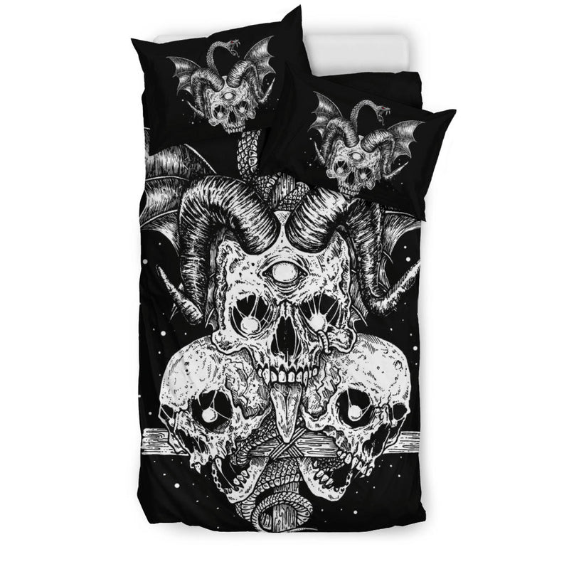 Skull Bat Wing Cyclops Demon Serpent Cross 3 Piece Duvet Set