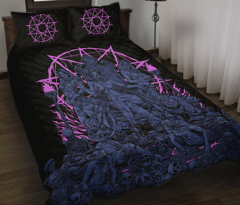 Skull Demon Serpent Flesh Gluttony Throne Quilt 3 Piece Set Awesome Blue pink