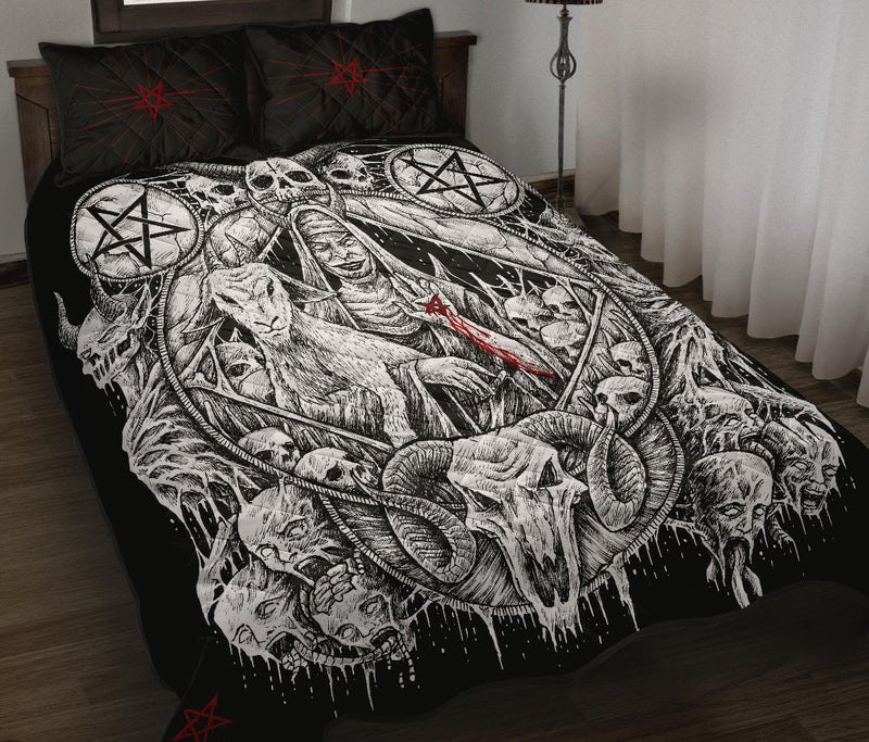 Skull Satanic Pentagram Demon Virgin Nun Goat Quilt 3 Piece Set