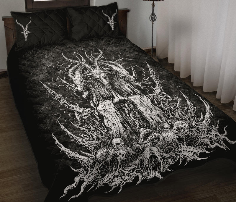 Skull Satanic Goat Quilt 3 Piece Bed Set Black And White Original Version