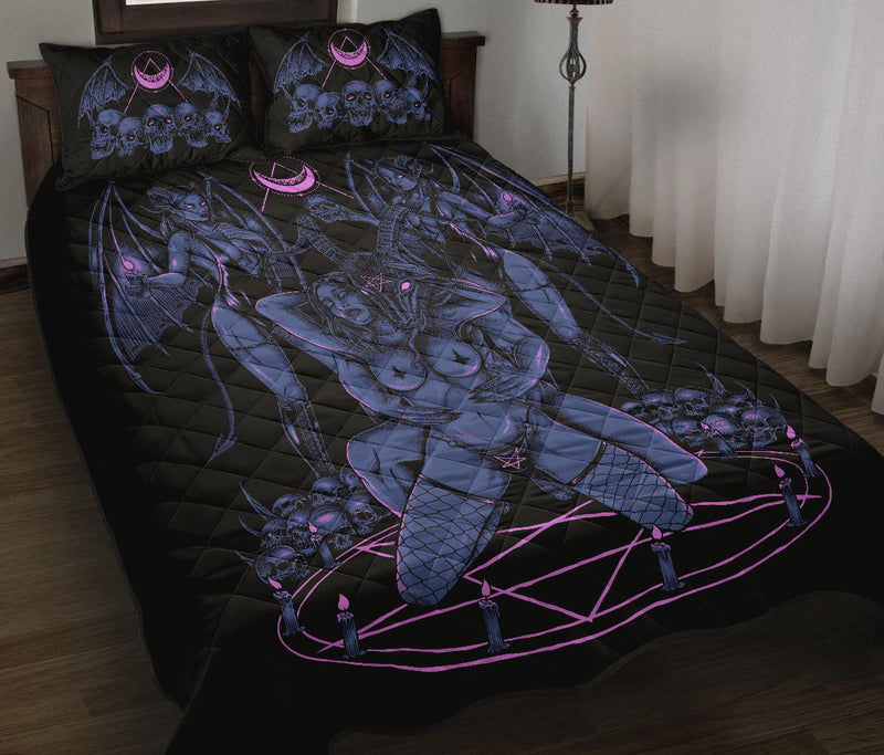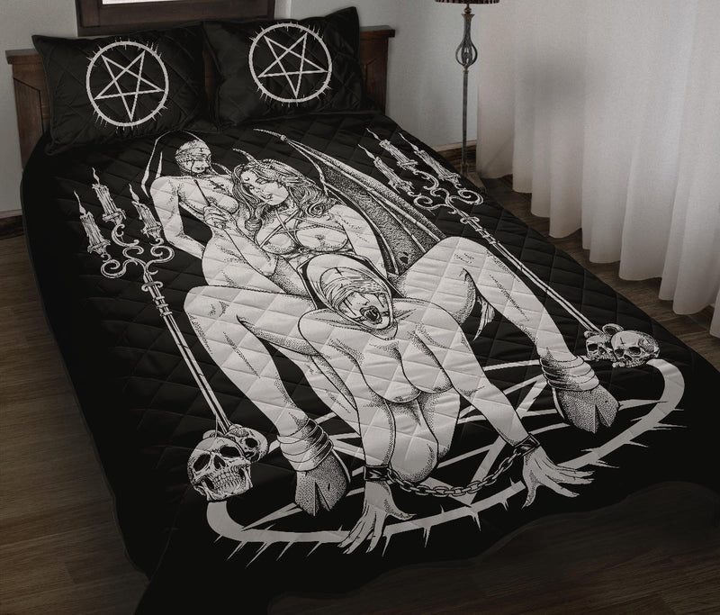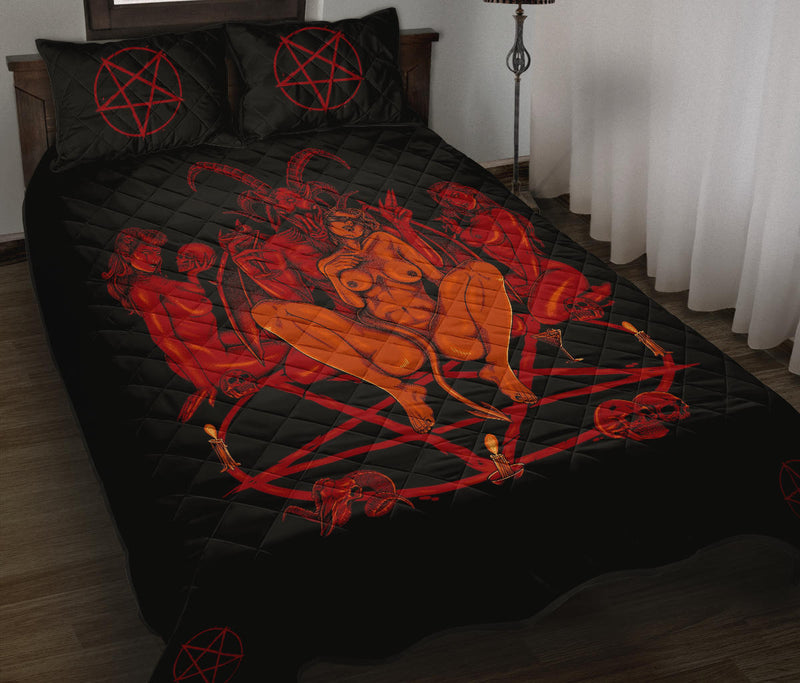 New! Skull Satanic Baphomet Goat Satanic Pentagram Lust God Naughty And Lovin It Cocktail Flesh Party Quilt 3 Piece Set Color