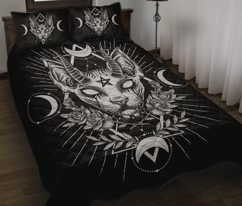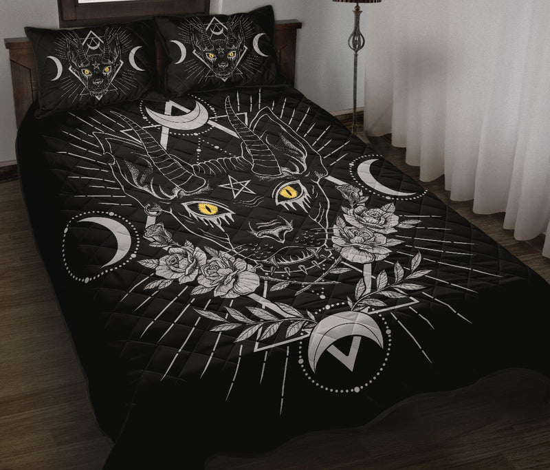 Gothic Occult Black Cat Unique Sphinx Style 3 Piece Quilt Set Awesome Color Color Version