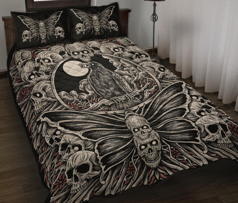 Skull Occult Raven Crow Moth Quilt 3 Piece Set Color Version