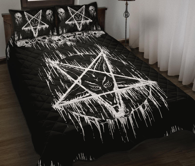 Skull Satanic Pentagram Drip Quilt 3 Piece Bed Set