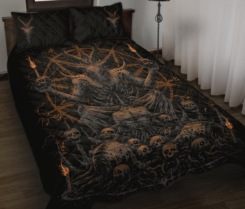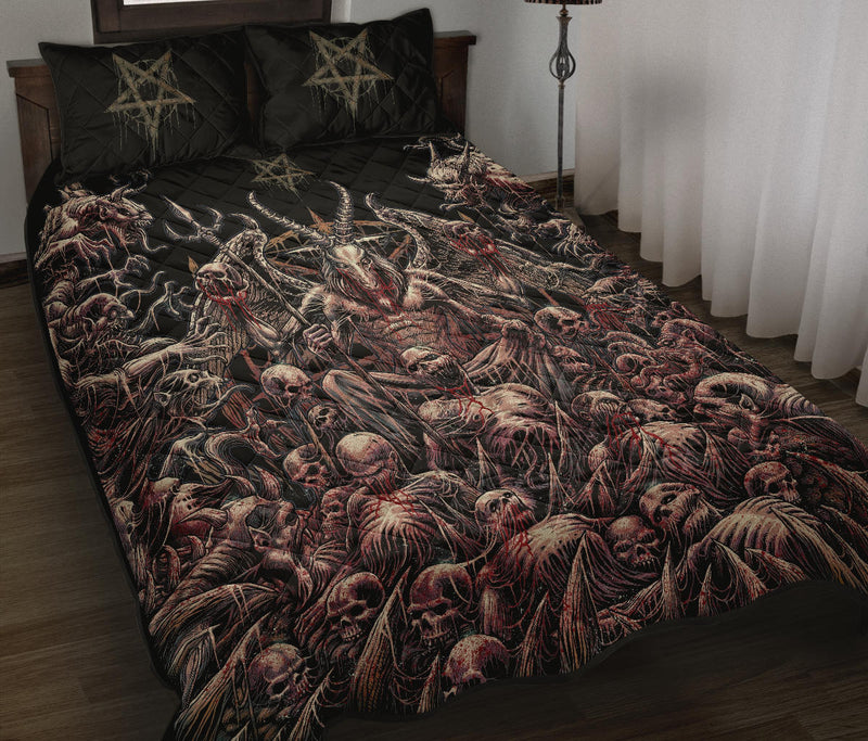 Skull Skeleton Satanic Goat Eternal Impaled Torment Skull Candle Trophy Quilt 3 Piece Set Dark Version