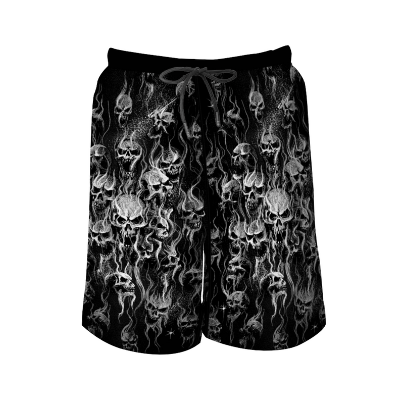 Smoke Skull Men's Board Shorts Black And White