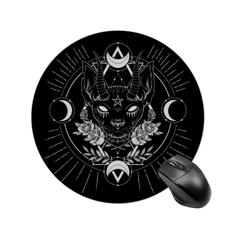 Gothic Occult Black Cat Unique Sphinx Style Non-slip Waterproof Mouse Pad Awesome Demonic White Eye Black Cat Version