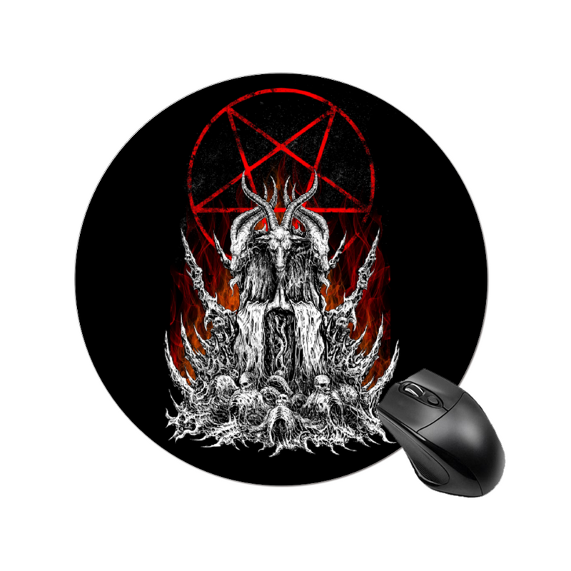 Skull Satanic Goat Satanic Pentagram Flame Round Non-slip Waterproof Mouse Pad