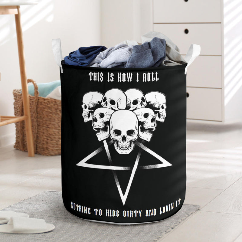 Skull Satanic Pentagram Dirty And Lovin It Laundry Basket