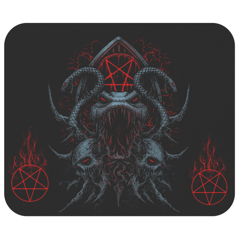 Skull Satanic Pentagram Demon Serpent Shrine Mousepad Color Version