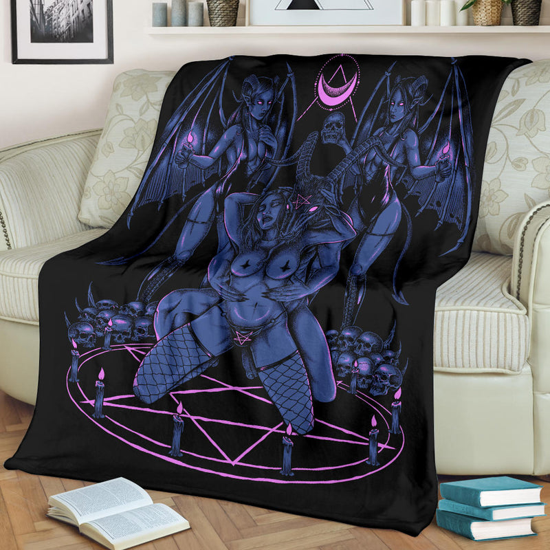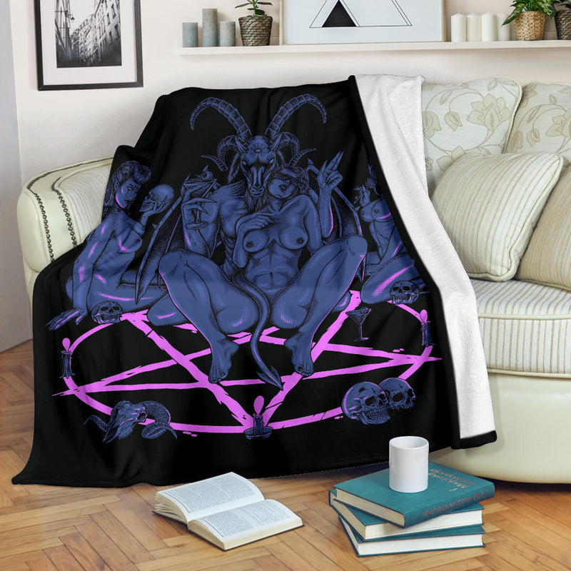 New! Skull Satanic Baphomet Goat Satanic Pentagram Lust God Naughty And Lovin It Cocktail Flesh Party Blanket Sexy Wild Blue Pink