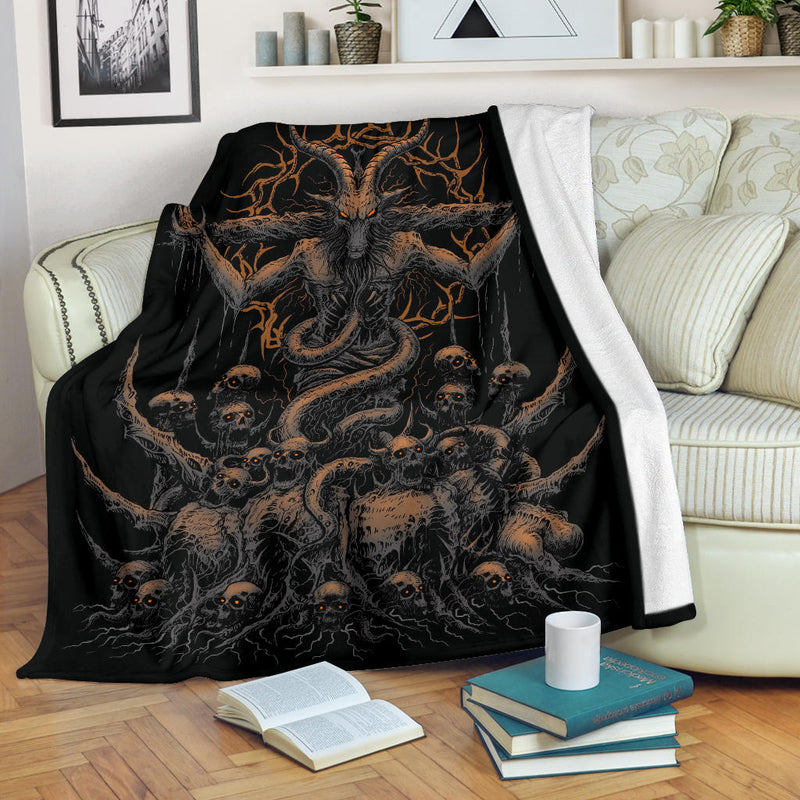New! Original Skull Satanic Malevolent Cyclops Baphomet Goat Demon Invasion Blanket Awesome Blue Pink