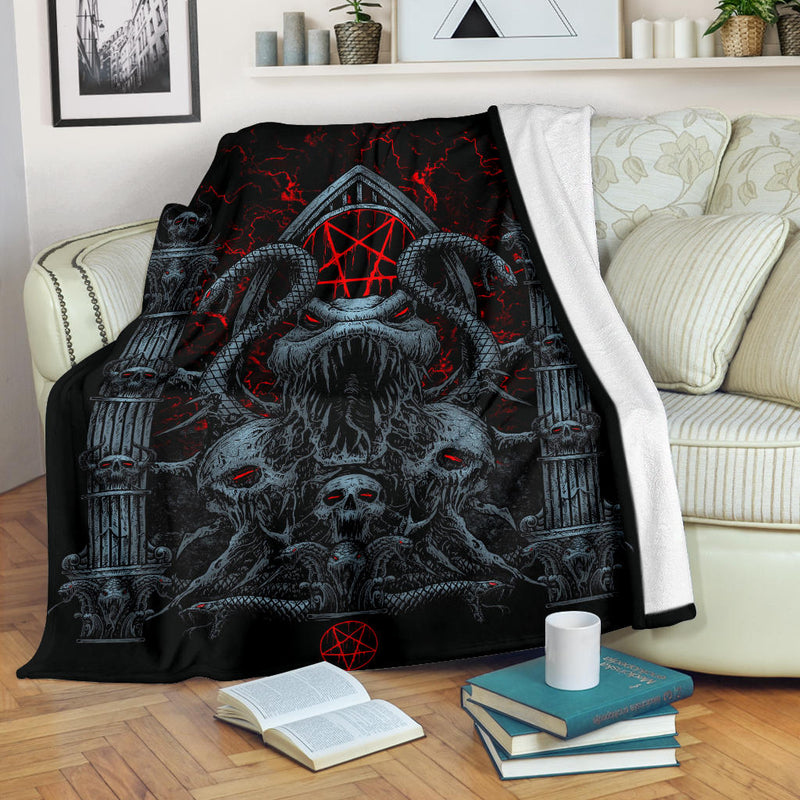 Skull Satanic Pentagram Serpent Gate Blanket Color Version