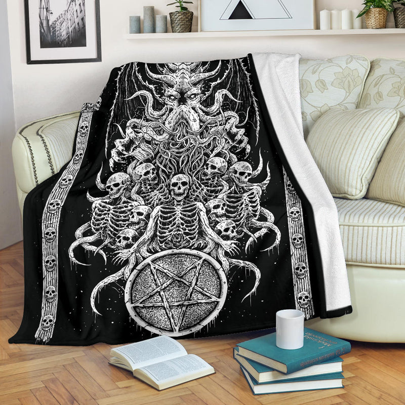 Skull Skeleton Satanic Pentagram Demon Octopus Shrine Blanket