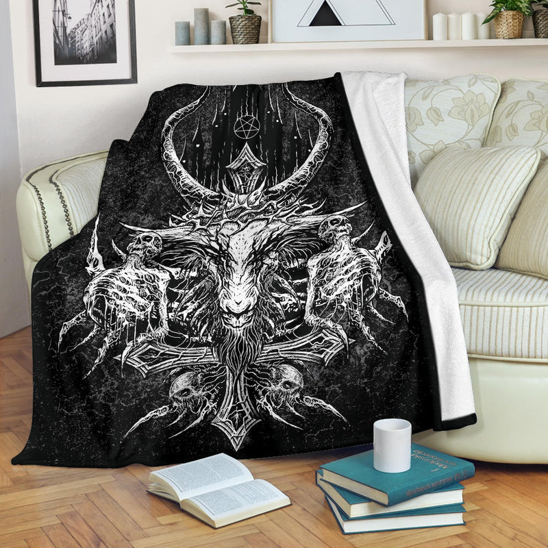 Skull Satanic Crowned Goat Satanic Cross Satanic Pentagram Night Church Part 2 Blanket Color Version