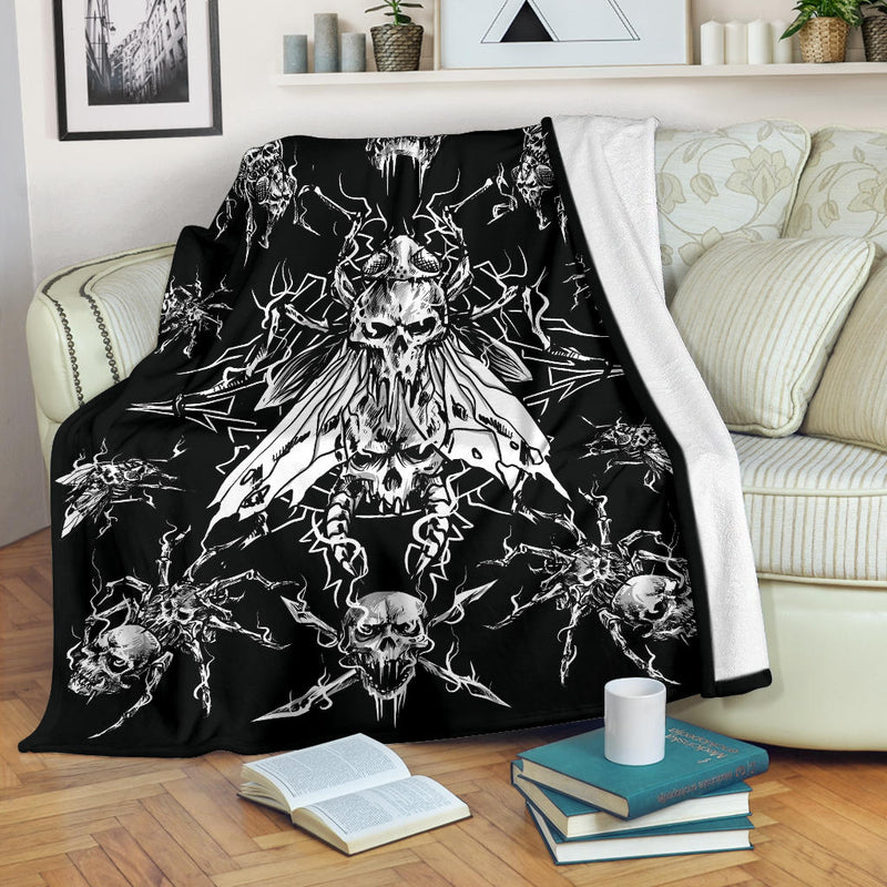 Skull Skeleton Demon Bat Skull Wing Death Shrine Blanket Black And White