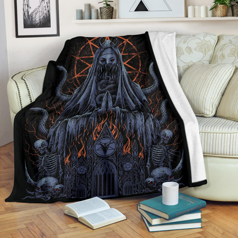 Skull Demon Virgin Serpent Satanic Pentagram Flame Church Blanket Night Blue
