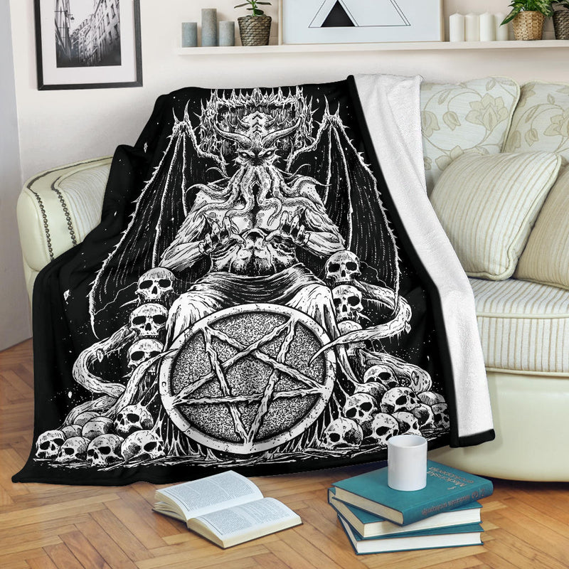 Skull Satanic Pentagram Bat Wing Demon Octopus Skull Throne Blanket