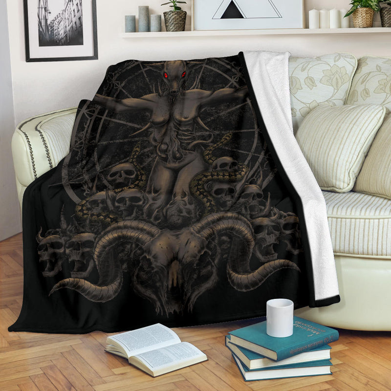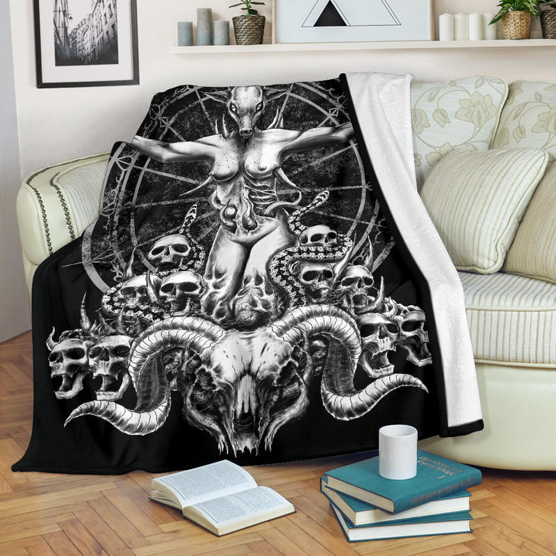 Skull Satanic Demon Goat Woman Blanket Rust Color Red Eye Version