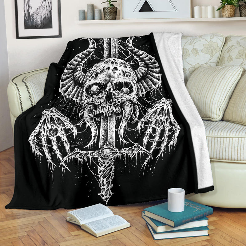 Skull Skeleton Gothic Hooded Wing Demon Sword Blanket Awesome New Color