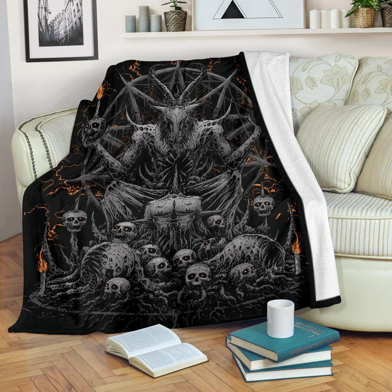 Skull Skeleton Satanic Goat Eternal Impaled Torment Skull Candle Trophy Blanket Silver Version