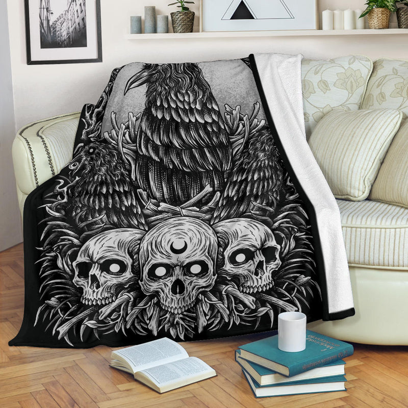 Skull Goth Occult Crow Eye New Dark Version Blanket