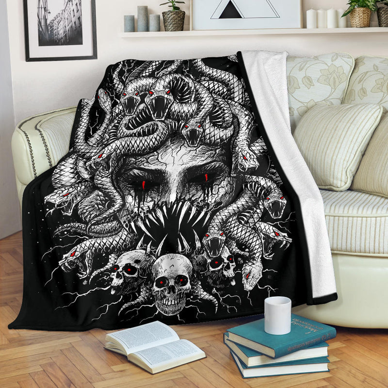 Skull Medusa Demon Goddess Eternal Revenge Of the Injustice Violation Blanket Black And White Red Demon Eye