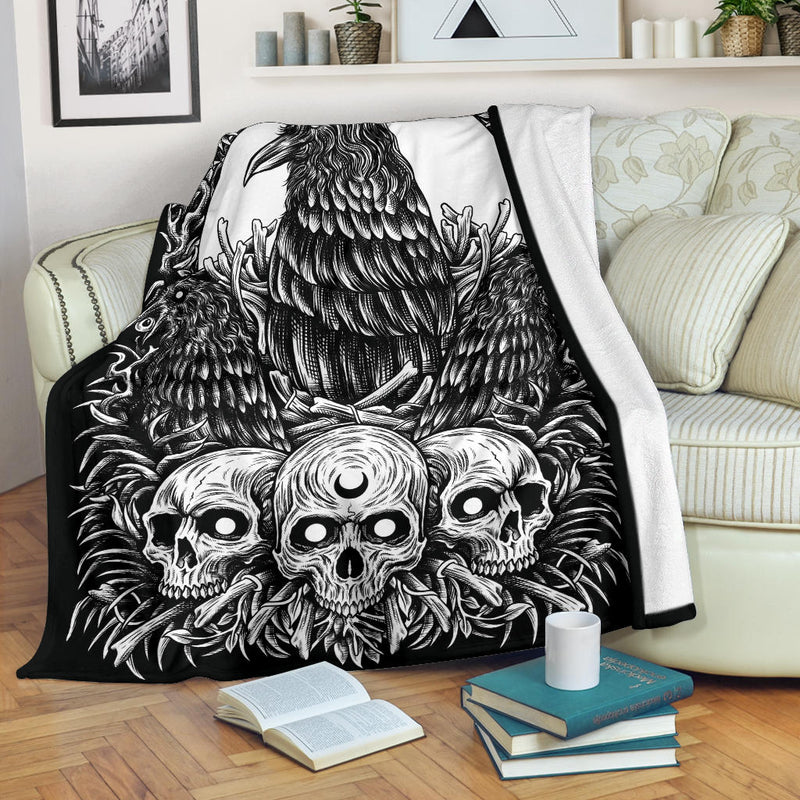 Skull Goth Occult Crow Eye New Dark Bright White Blanket
